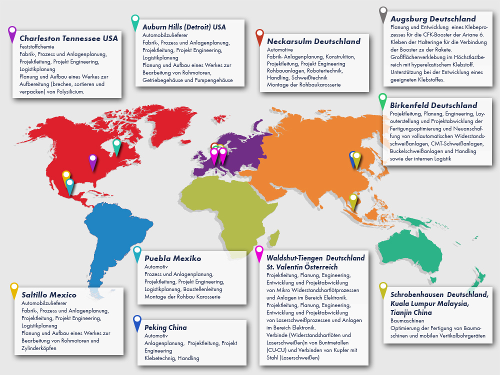 Die Projektsteuerung erfolgt aus den USA, die Entwicklung und das Engineering findet in Deutschland statt, die Anlagen werden in Shanghai (China) installiert.